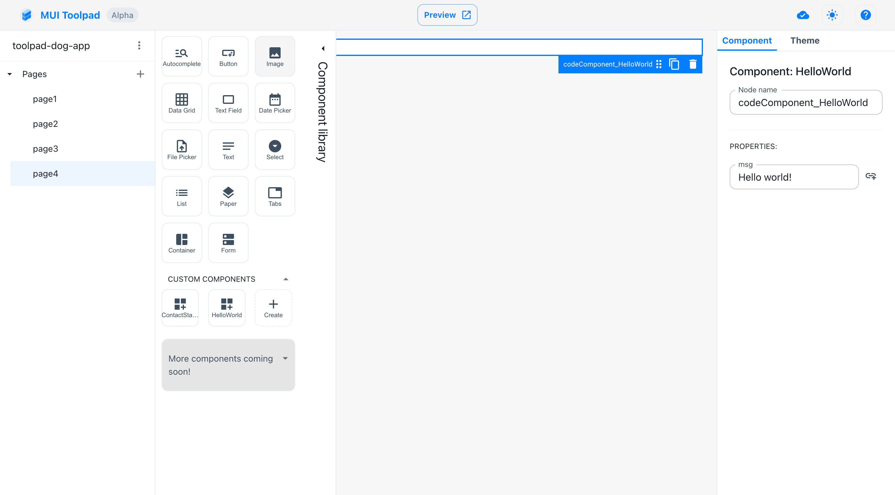 The steps below explain how to create and use a custom component in Toolpad Studio.