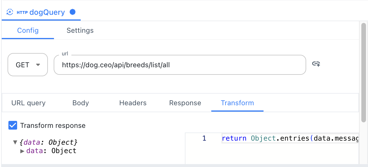 You can transform the response via a JavaScript expression in this tab. This expression must return a data variable.