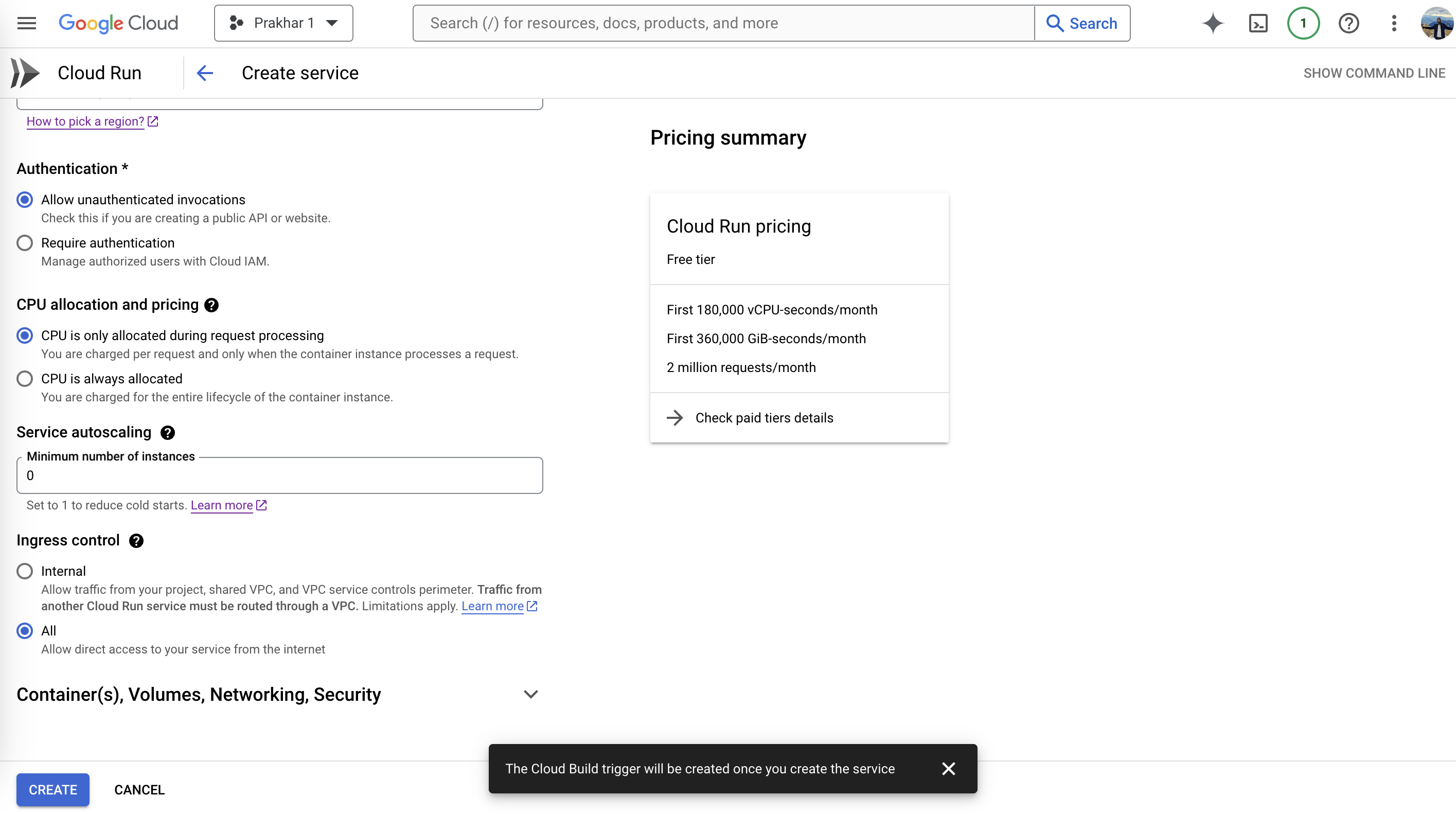 Create Cloud Run service